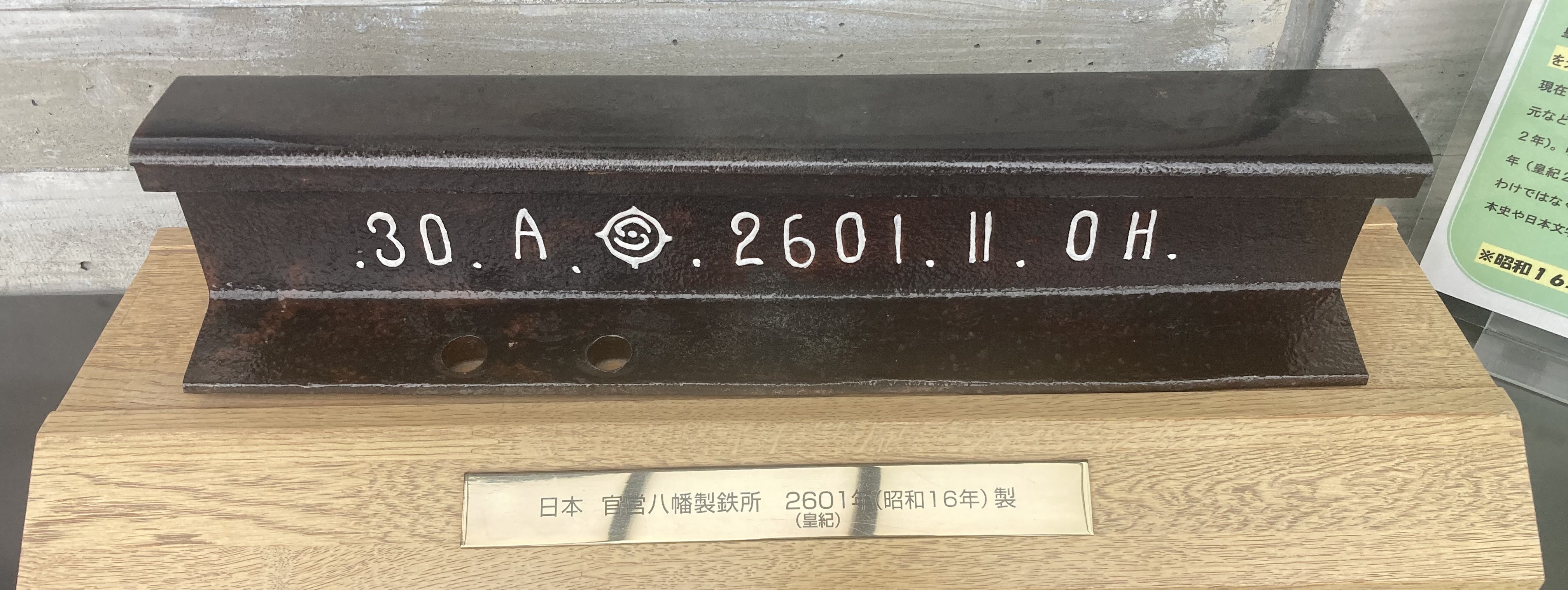 ※ 札幌市にある北海道鉄道技術館では、刻印がしっかりしたレールを見ることが出来ます。1907(明治40)年、ドイツのライン社製造。函館本線の複線化の時に使用されたとのことです。(2024.9撮影)